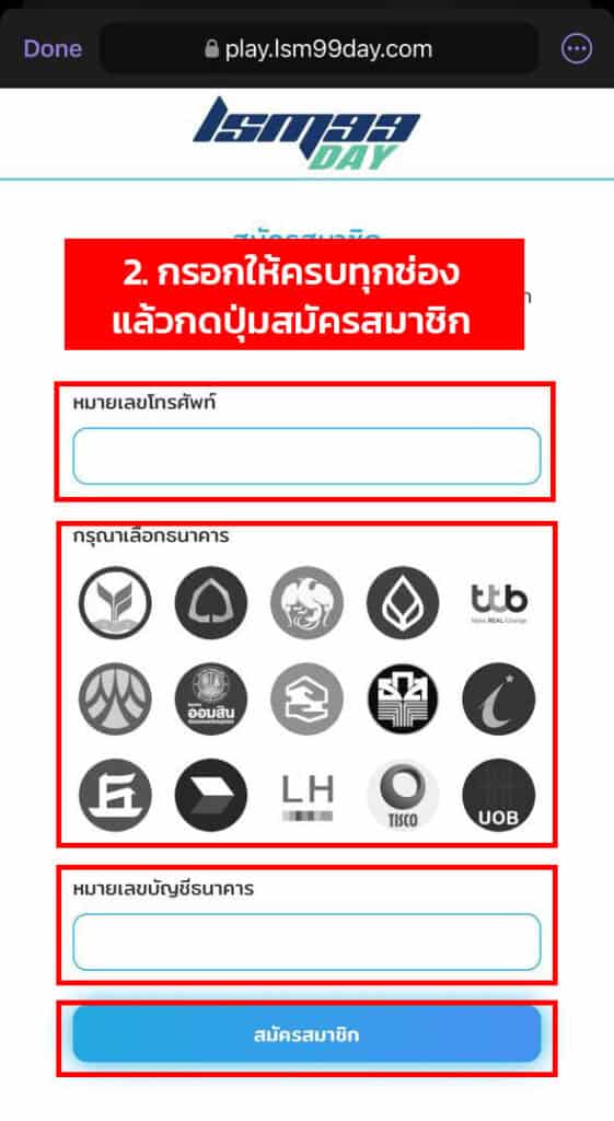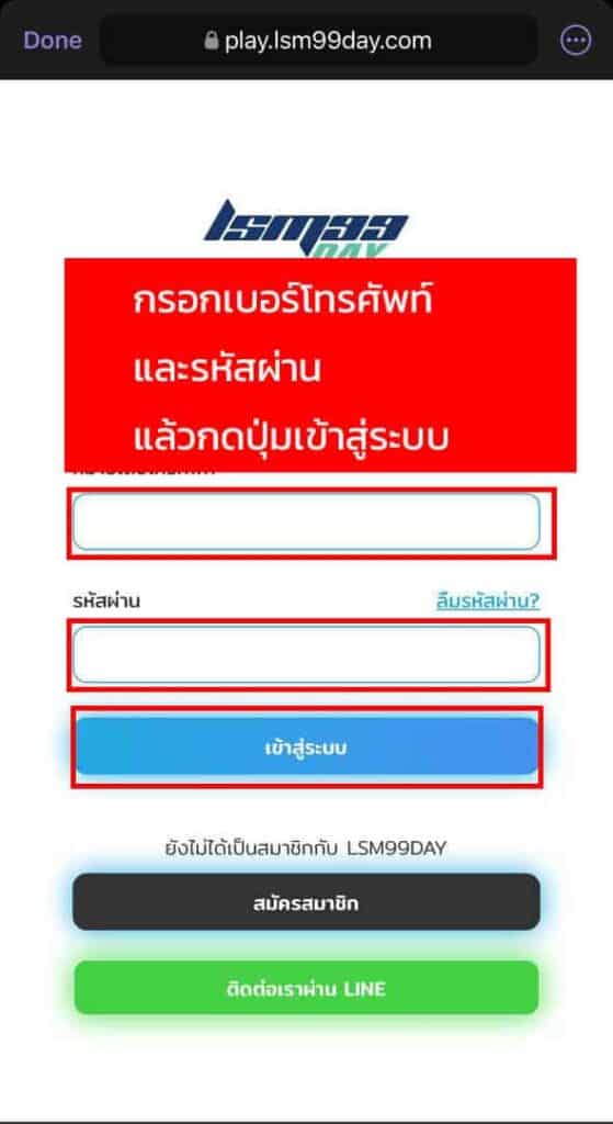 ขั้นตอนการ Login คือ ให้กรอกรายละเอียด เบอร์โทรศัพท์ และ รหัสผ่าน ให้ครบแล้วกดปุ่ม เข้าสู่ระบบ
