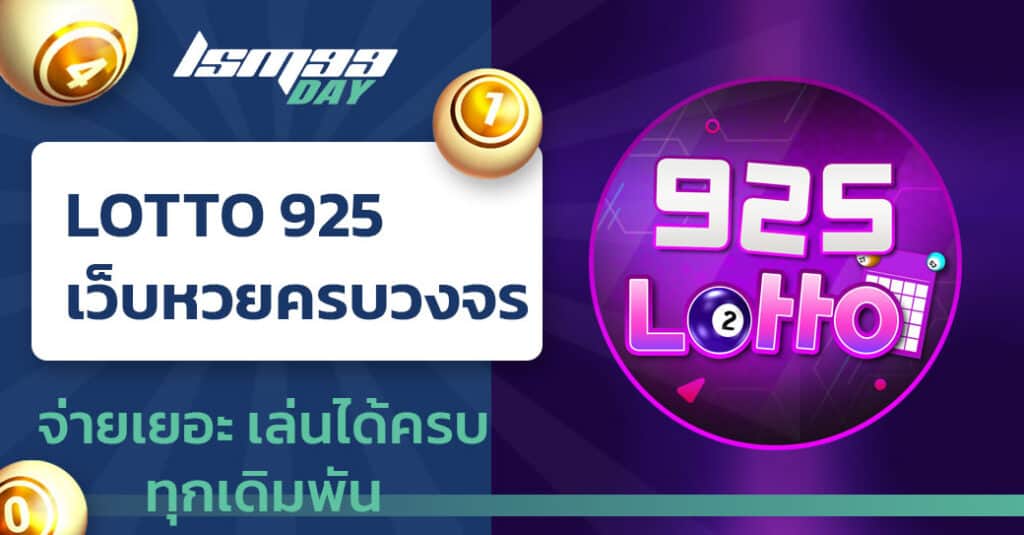 lotto 925 ทางเข้าเว็บแทงหวยออนไลน์เว็บตรง เปิดให้บริการไม่ผ่านเอเย่นต์ เลือกแทงหวยได้ครบทุกรูปแบบ ซื้อหวยได้มากกว่า 30 ชนิด ล็อตโต้ 925 ยังให้บริการอย่างครบวงจร เล่นได้ครบทั้ง กีฬา , สล็อต , คาสิโน สมัครสมาชิกเข้าเดิมพันด้วยระบบออโต้ ทำรายการฝากถอนไวตลอด 24 ชม. เลือกรับโปรโมชั่นได้หลายรายการ เล่นได้ ถอนเงินออกได้จริงทุกยอด สมัครเว็บแทงหวยเว็บนี้ดียังไง มีจุดเด่นอะไรอีกบ้าง หาคำตอบได้ที่นี่